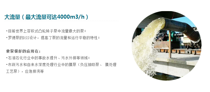 一個煉化廠設計了2臺事故水提升泵。要求當事故發(fā)生時,來自聯(lián)合裝置的事故及排水通過裝置內雨水明溝,自流排入事故排水緩沖池,加壓到0.5MPa后,由管道送入2.2KW外的事故水存儲管儲存。需要事故水泵具有大流量、無堵塞和強自吸能力,羅德凸輪轉子泵的性能完全滿足上述參數(shù),很完美的勝任了該工作。
